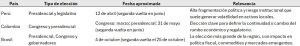 Otro elemento determinante para la percepción de riesgo en la región son los eventos electorales. En 2026 se celebrarán tres elecciones relevantes que incrementan la incertidumbre política.